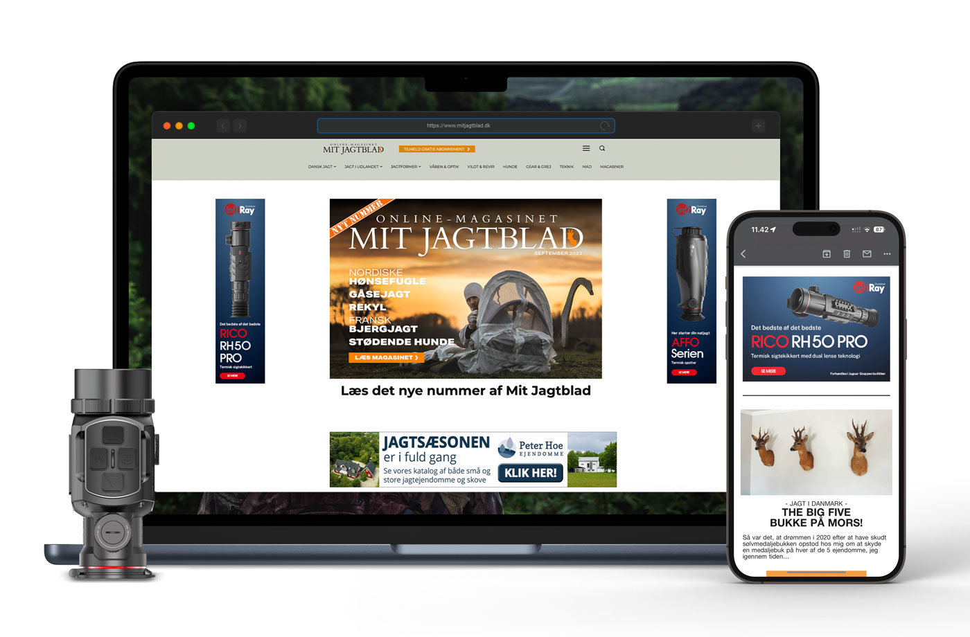 Annoncering i digitale og trykte medier for InfiRay, som producerer termisk og digital optik til jagt.