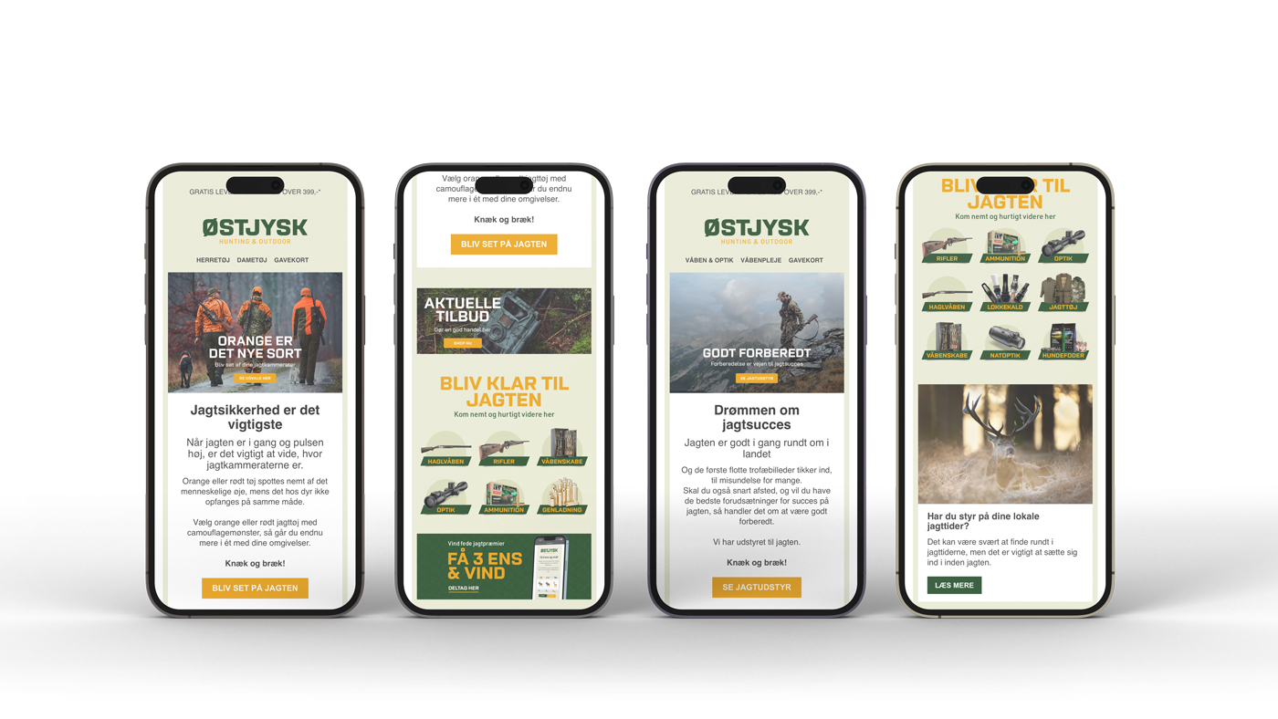 Ansvarlig for at køre design og udvikling af et nyt visuel univers i mål for Østjysk Hunting & Outdoor. Alle brugerflader online og fysisk skulle redesignes.